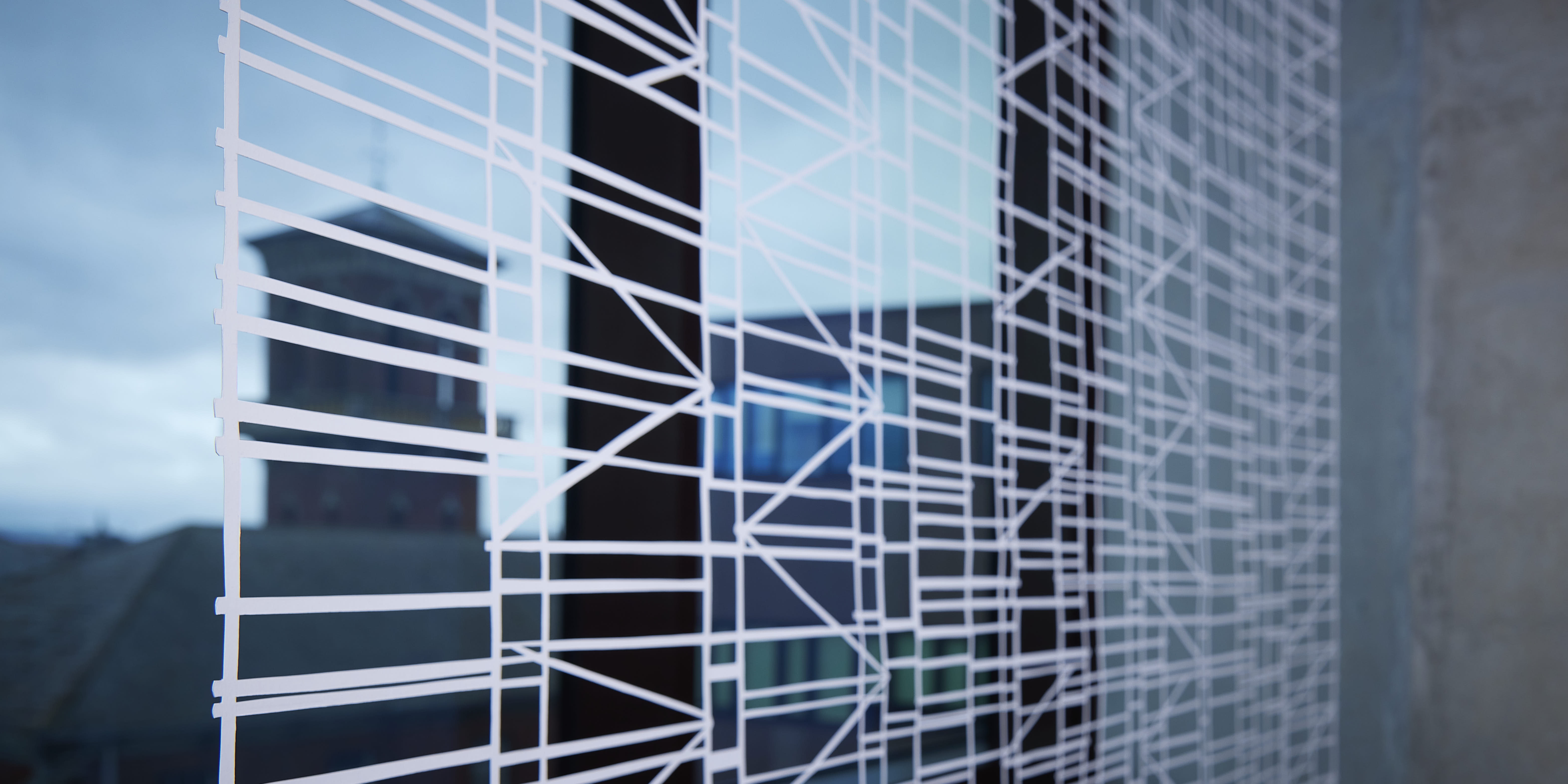 Drawing from the writings of French philosopher Bachelard, I created a scaffold as a meditation on the nature of human construction in the natural world, and the tensions that may exist within this. The ‘piece-meal’ fabrication of the local building work referred to in Dr. Ruth Mc Manus’ research was of interest to me, this contrast in the formal and man-made quality of the developments. A quote from September 1925 in Ruth’s research, when land in Drumcondra was being acquired for social housing, was also at the forefront of my mind. ‘At present one may as well try and live in an aeroplane as to get a vacant house in Dublin’. This phrase is proof of this eternal desire to have a home and all the emotions invested in this.The work is cut by hand on Fabriano paper, the fragility of the large-scale paper cut-out is in contrast to the solidity of scaffolding and building materials.