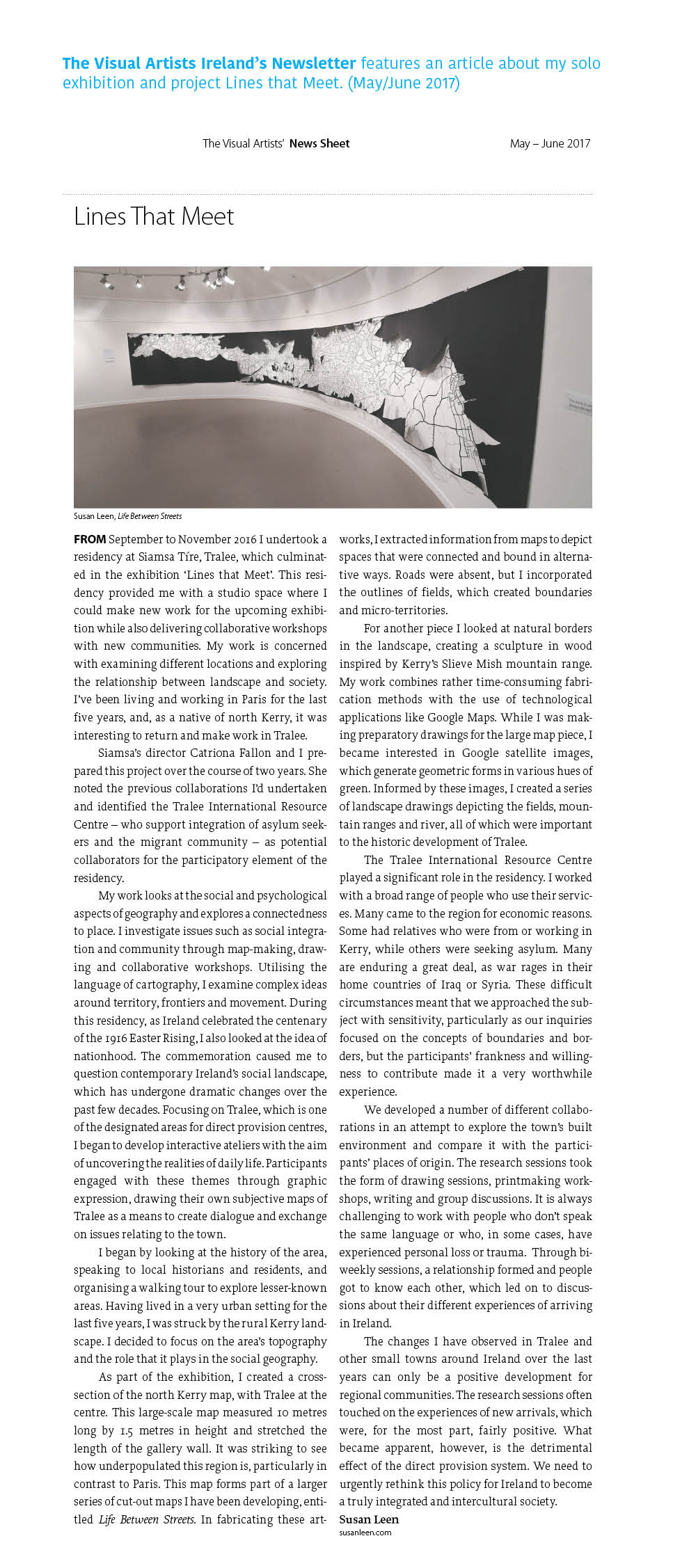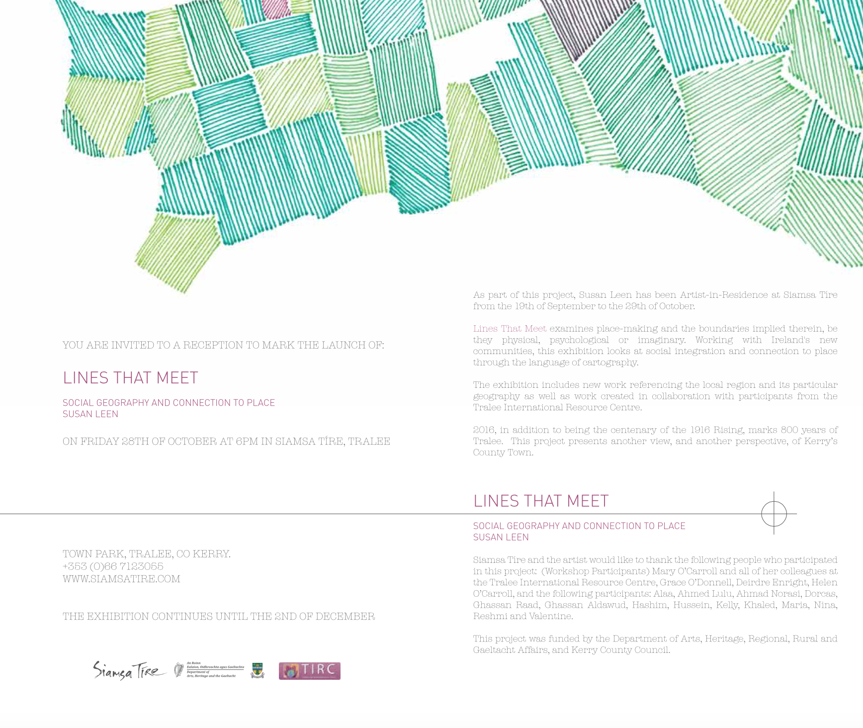 ‘I am a visual artist working in expanded drawing, printmaking, social practice and ephemeral installation. My work interrogates place and how the topography and geography of a site can inform and create culture.’